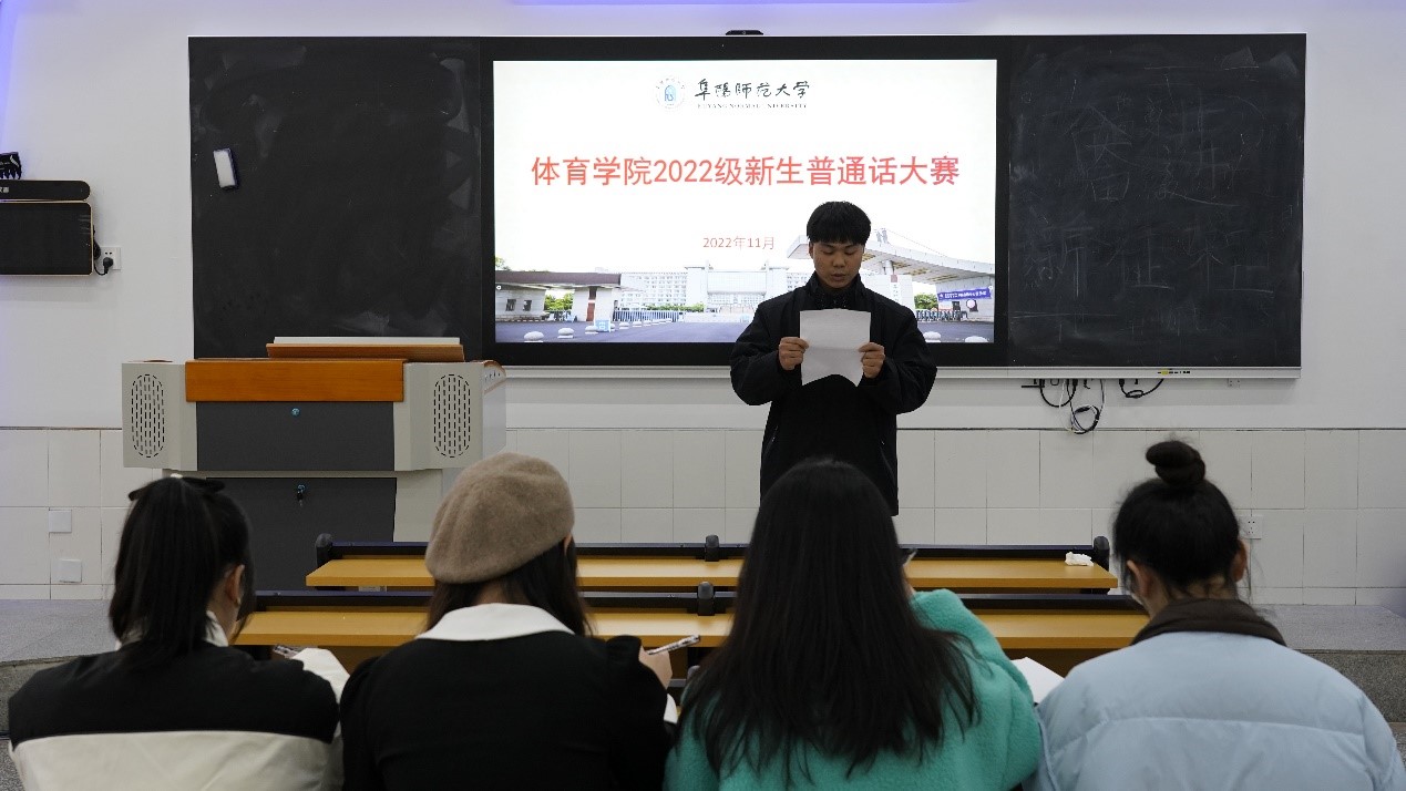 为学习宣传党的二十大精神,推广普及普通话。2022年11月22日至23日,体育学院于景行楼112教室举行新生普通话大赛,本次大赛共43人参赛。由体育学院团委负责人张凯丽、校广播站成员房菲菲、2020级表演专业邵雨濛和刘畅担任此次大赛评委。