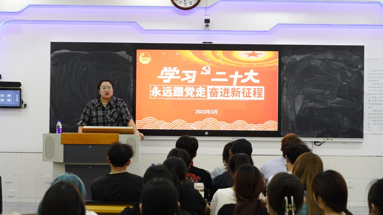 3月9日下午,体育学院在景行楼112教室开展党的二十大精神宣讲会,会议由校青年讲师团成员、外国语学院分团委负责人赵雪志主讲,体育学院分团委负责人张凯丽主持,青年马克思主义培训班43名成员参加。