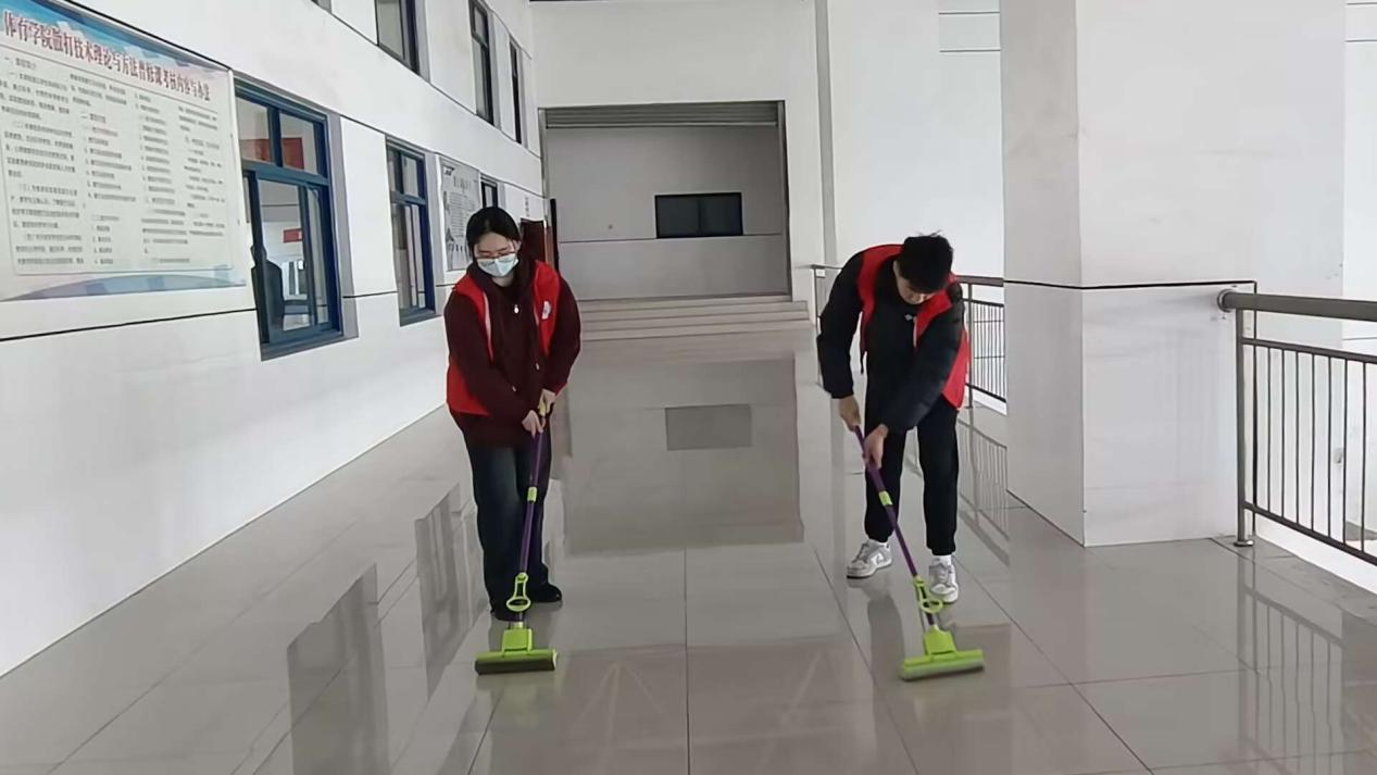 校园清扫,践行雷锋精神。“青马班”成员化身为勤劳的小蜜蜂,身着醒目的红马甲穿梭在校园各个角落,对体育馆、景行楼、田径场等场所进行仔细清扫,为打造美丽和谐的校园环境贡献一份力量。