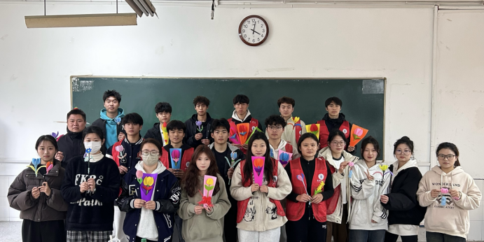 体育学院青年志愿者协会组织学生制作手工花束,大家跟随视频讲解,拿起彩纸、剪刀和细绳,一步步学习制作,通过绘画、折叠、缠绕、固定、胶装等一道道工序,制作出了创意花束,一朵朵精美的手工花瞬间在指尖“绽放”。活动结束后,大家捧着造型生动、颜色鲜艳的手工花合影留念,并将自己制作的手工花束和贺卡送给教师、食堂阿姨、宿管阿姨、保洁阿姨们,感谢她们用朴实的言行、平凡的工作为我们的学习和生活保驾护航。