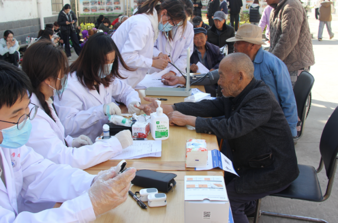 阜阳医学院的青协志愿者们为老人们进行了血糖、血压、血氧和心率等多项检查,耐心细心地为每位老人检测,并仔细记录数据。他们还针对老人们的身体状况给予了专业的健康建议,叮嘱老人们注意日常饮食和作息。