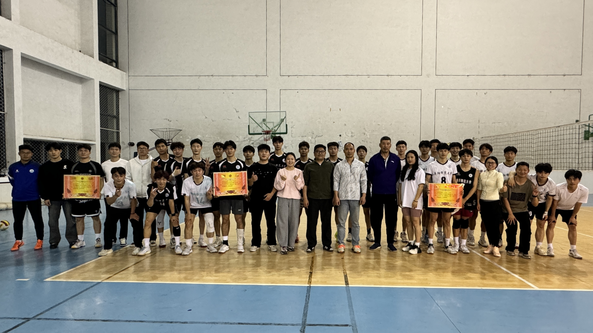 送毕业生排球联赛。此次排球赛分男女组,以年级为单位共有7支队伍参加,历时7天11场激烈比赛,赛场上球员们奋力拼搏,挥洒汗水,不论是队员们攻防结合、默契配合的精彩对攻,还是个人发球、传球、垫球、扣球、拦网的炫技亮相,皆体现了体院学子昂扬的青春活力与扎实的专业水平。最终,2022级体育教育专业队获男子组冠军,2022级体育教育专业队获女子组冠军。