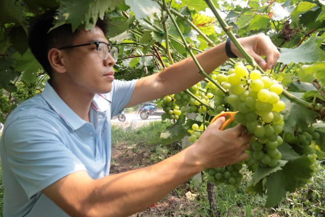 在实践中,团队成员挽起裤脚、戴上草帽,参与除草、翻土等农活体悟劳动艰辛。为打开当地特色产品销售渠道,团队成员进入葡萄种植园区与工作人员一同采摘葡萄,了解其种植技术和品种,与当地政府合作,精心策划“云端”促销。在镜头前,团队成员将葡萄的清甜爽口与独特的种植故事娓娓道来,让石头镇的葡萄跨越地域限制,直抵全国消费者指尖。在镜头内外,乡土好货与青春流量碰撞出的火花,正为石头镇的发展注入新活力。