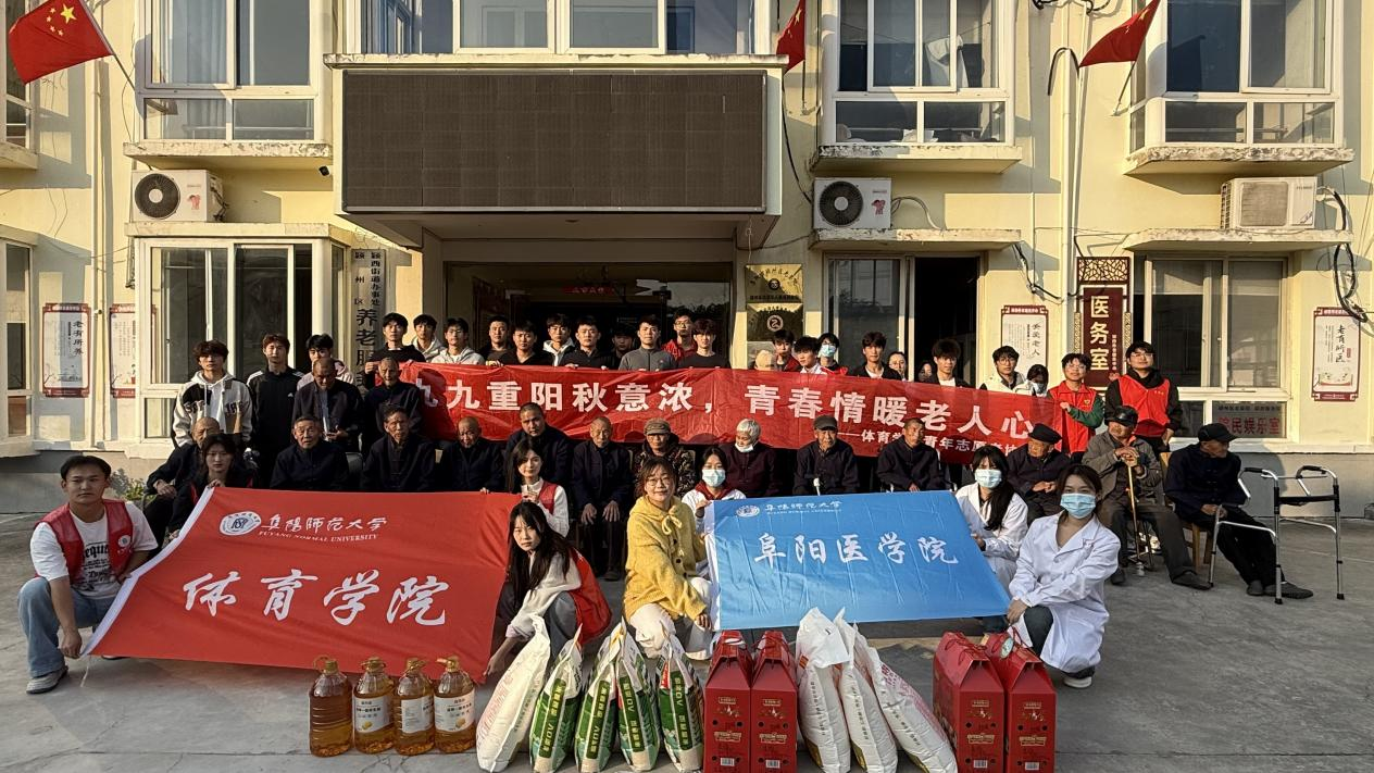 岁岁重阳,今又重阳。10月28日下午,阜阳市颍州区养老院内暖意融融、欢声阵阵,体育学院、阜阳医学院的青年志愿者们带着对老前辈的崇敬之情,以“九九重阳秋意浓,青春情暖老人心”为主题开展敬老慰问活动,用青春活力为这里的老人们送上了别样的节日关怀。