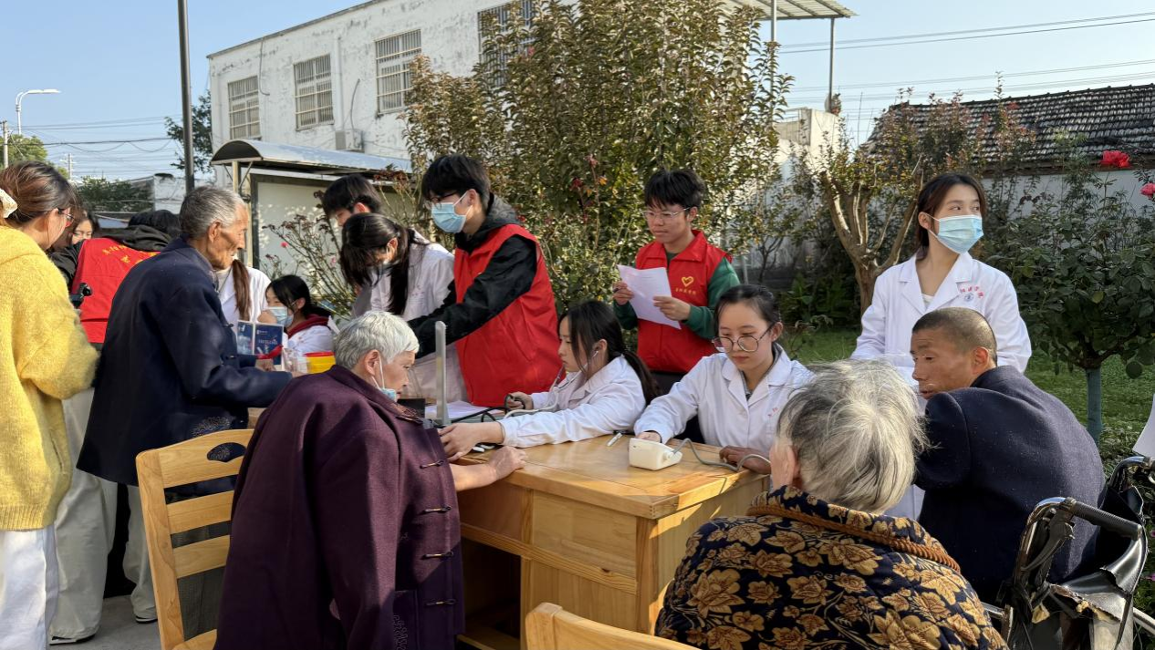 阜阳医学院的志愿者们细致的为老人们进行了血糖、血压等各项指标检测,解读检测数据并给出个性化的健康建议,还送上大米、莜面等物资,将健康与温暖切实送到老人身边。