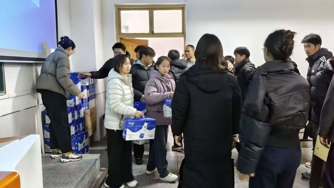 学院为全体考研同学赠送酸奶,愿在最后的冲刺阶段再接再厉,考出好成绩。此次活动增强了学生考试信心,缓解备考压力,让学生以更加积极平和的心态迎接考试。