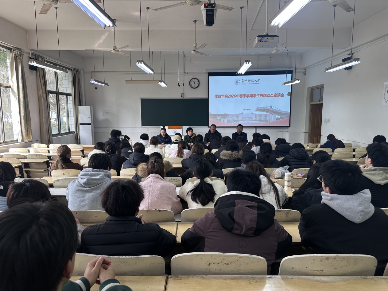为及时掌握新学期学生思想动态,精准对接学生成长需求,3月12日,体育学院召开2026年春季学期学生思想动态座谈会。体育学院院长杨中皖、副书记徐春婷、副院长王暐琦、团委老师张凯丽及各年级学生代表参加会议,座谈会由张凯丽主持。