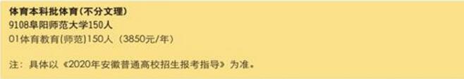 阜阳师范大学2020年招生简章(2):体育学院2020本科分专业招生计划