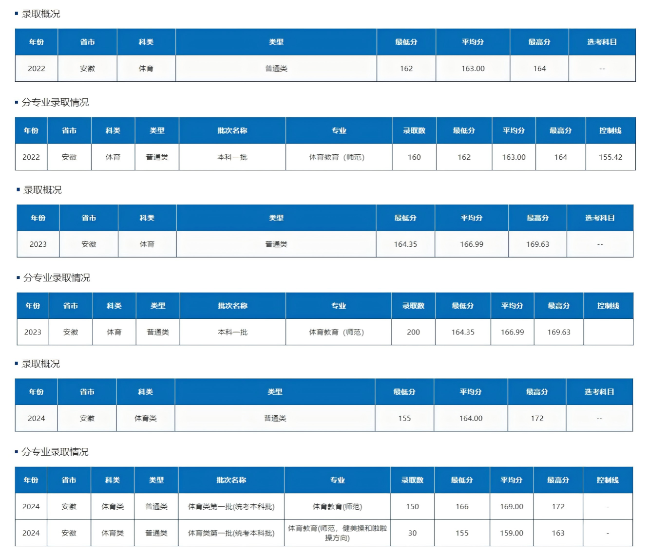 阜阳师范大学体育学院近3年录取分数