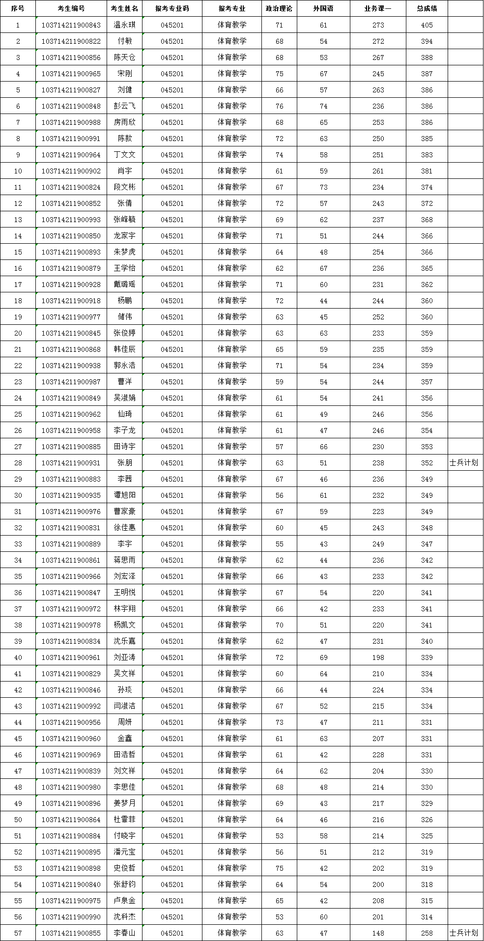 体育学院2024年硕士研究生招生一志愿复试考生名单