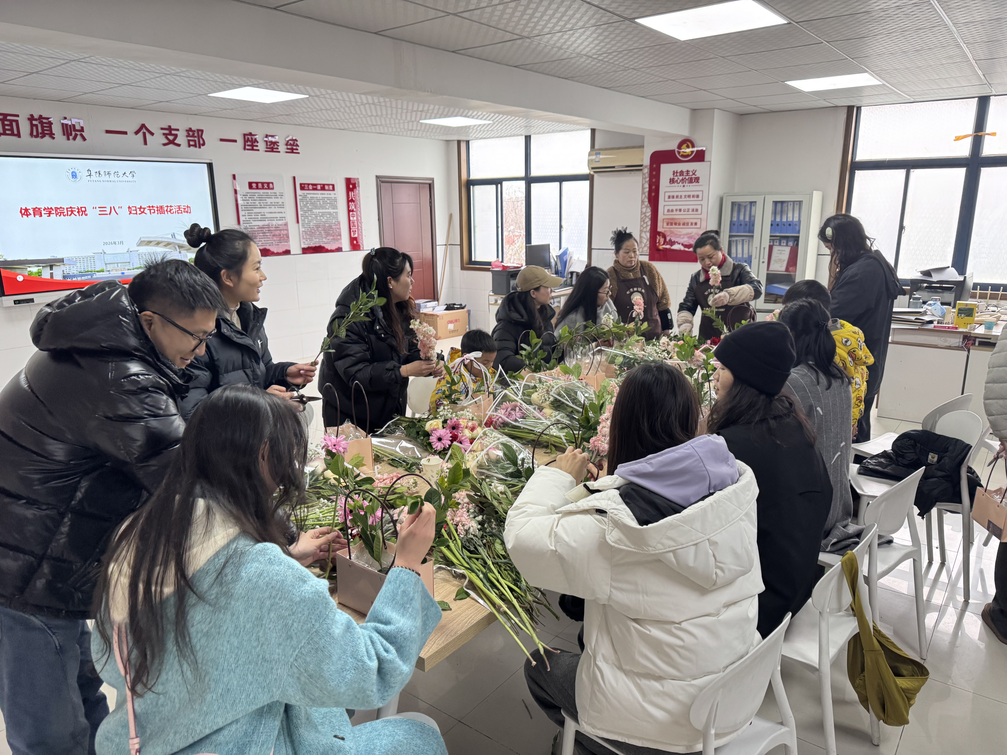 为庆祝第116个“三八”国际妇女节,丰富女教职工的精神文化生活,体育学院于3月4日在体育馆三楼会议室举办插花活动。学院党委书记范小虎、副书记徐春婷出席活动并送出祝福。学院女教师参加。