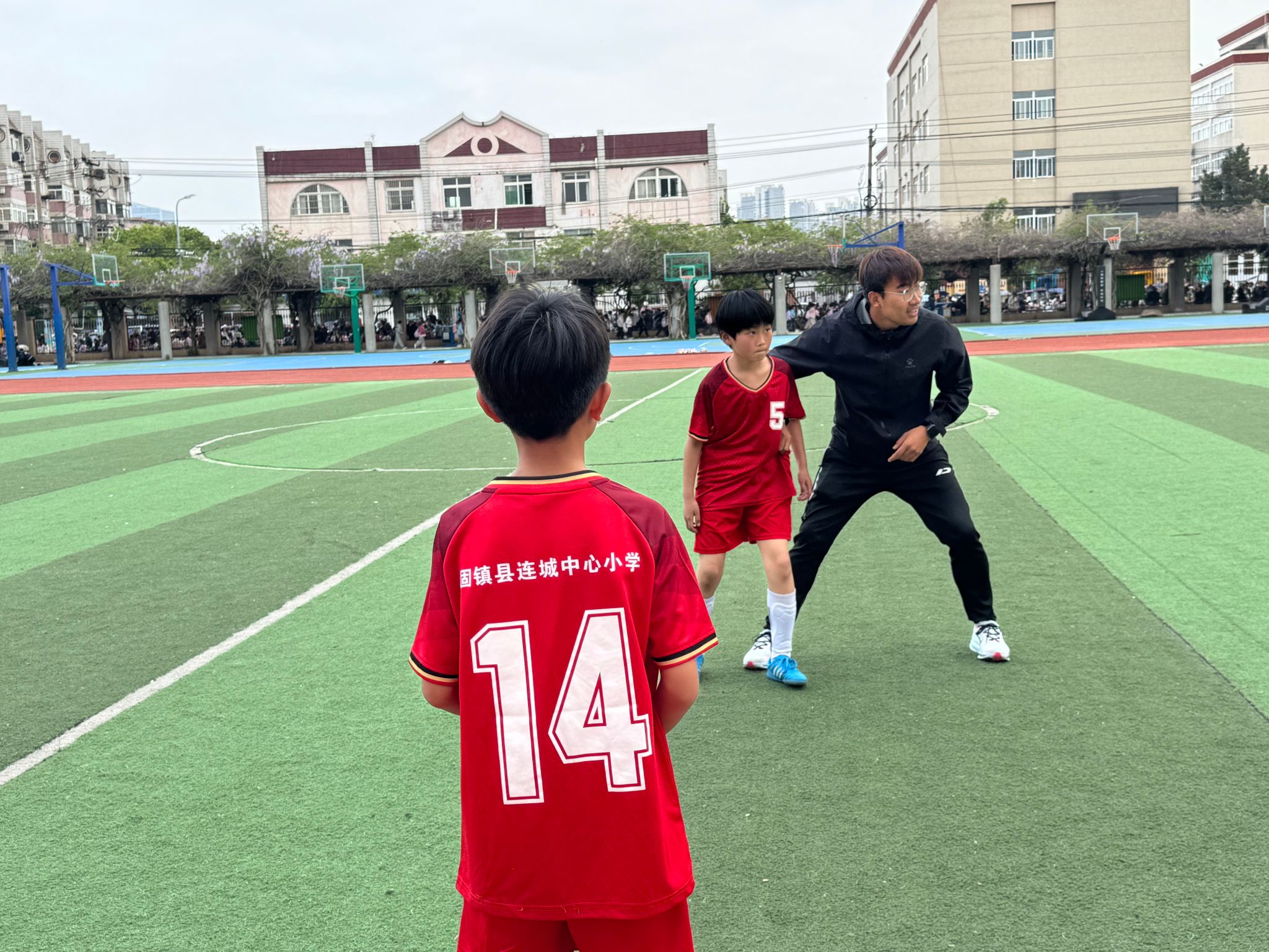 赛场上,两所小学的小球员们精神昂扬、配合默契,带球、传球、射门一气呵成,在攻防对抗中展现出顽强拼搏、团结协作的体育精神。刘康老师全程在场边专业指导,围绕跑位选位、传球配合、防守站位与射门技巧进行细致讲解,现场纠正技术动作、梳理攻防战术,把高校足球教学理念融入小学实战场景,帮助小球员在实战中提升竞技水平与足球素养。