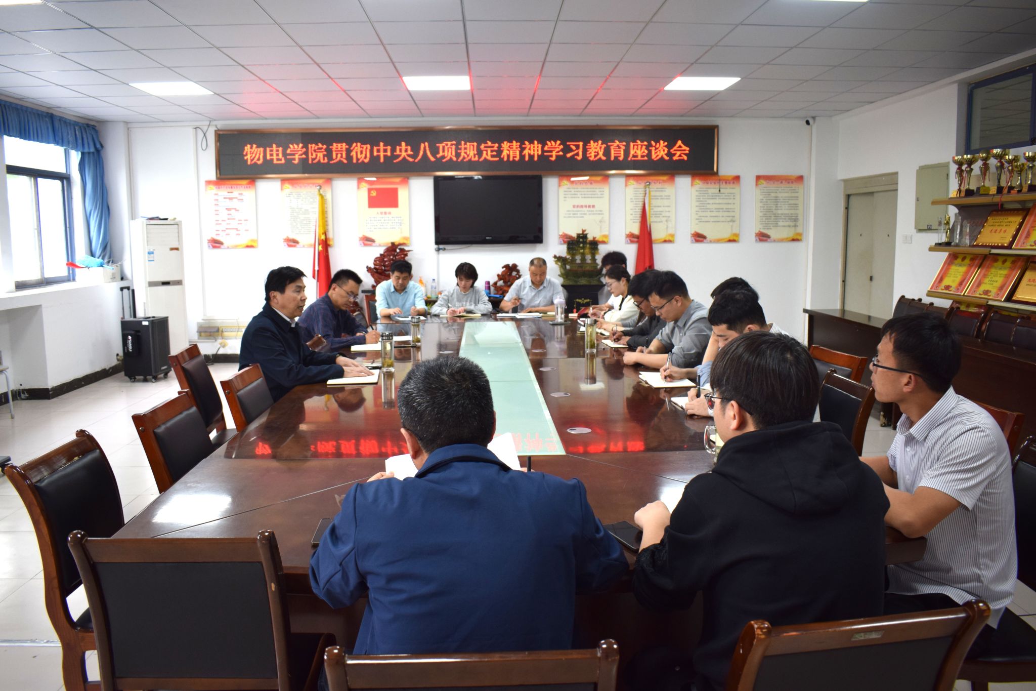 为了落实开门教育,广泛听取意见建议,扎实推进学习教育,4月22日下午,物理与电子工程学院党委在躬行楼C楼306会议室召开深入贯彻中央八项规定精神学习教育征求意见座谈会。来自一线的14名教师代表参加了座谈会,学院党委书记吴学军主持座谈会,学院党委副书记、纪委书记张传智出席。