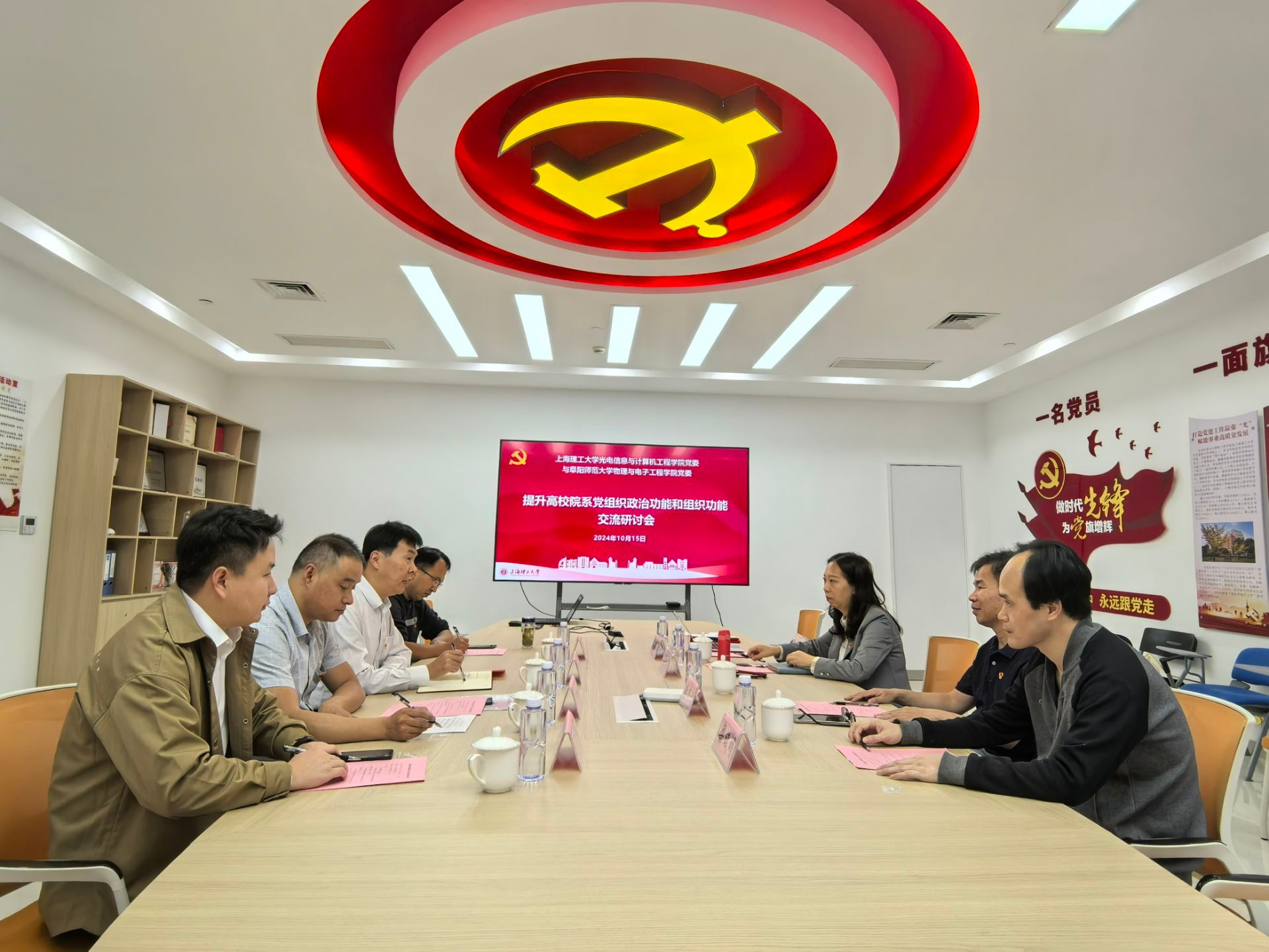 为贯彻落实《中共阜阳师范大学委员会党的基层组织建设“强基础、提质量、创品牌”三年行动计划实施方案(2022-2024年)》,加强基层党组织建设,推进省级党建工作“标杆院系”培育创建和全国“双带头人”教师党支部书记“强国行”专项行动,10月16日,物理与电子工程学院党委书记吴学军一行4人赴上海理工大学光电信息与计算机工程学院开展党建结对共建。上海理工大学光电信息与计算机工程学院党委书记袁媛、测试与信息工程系系主任张荣福等接待了吴学军一行。