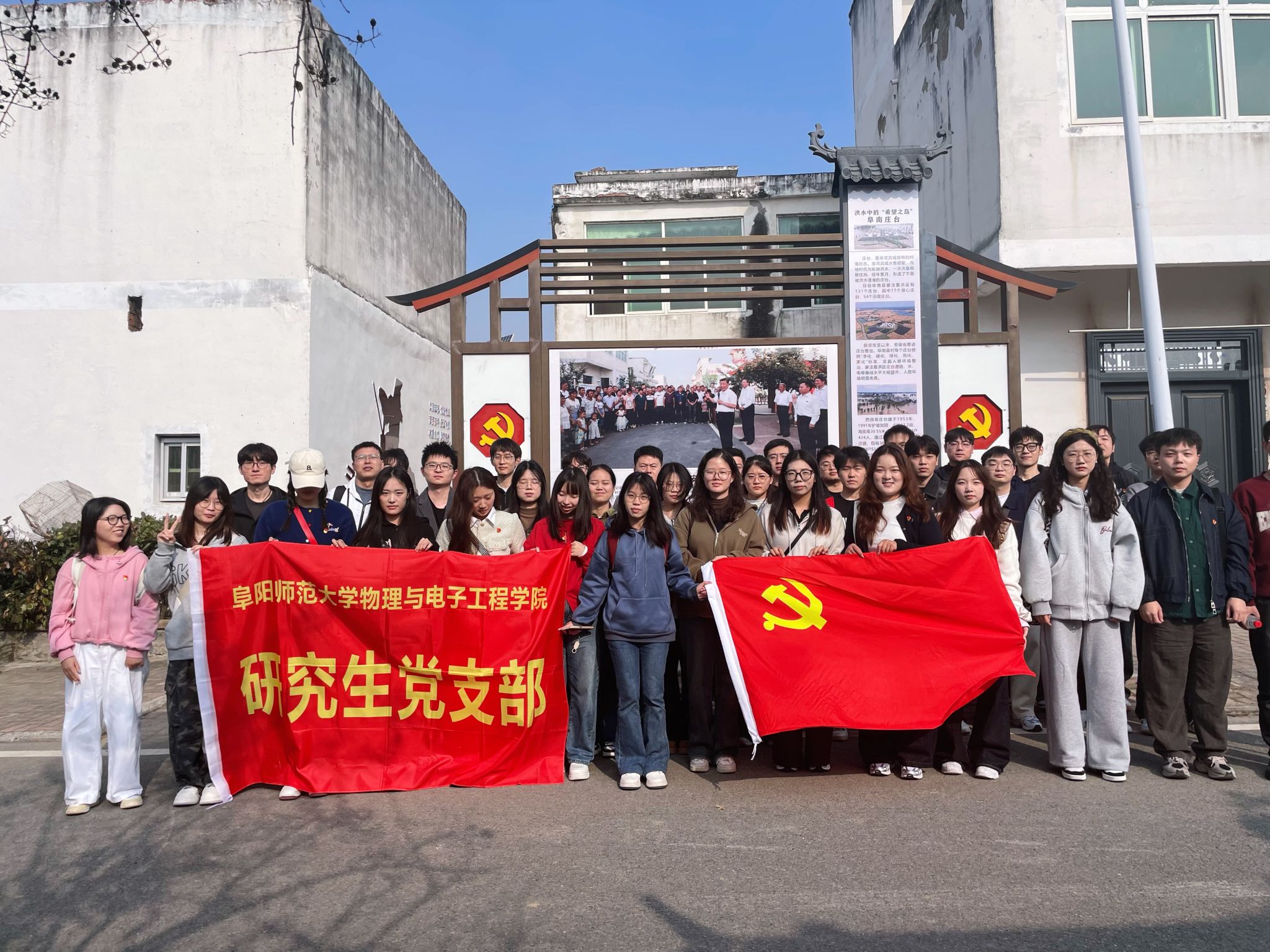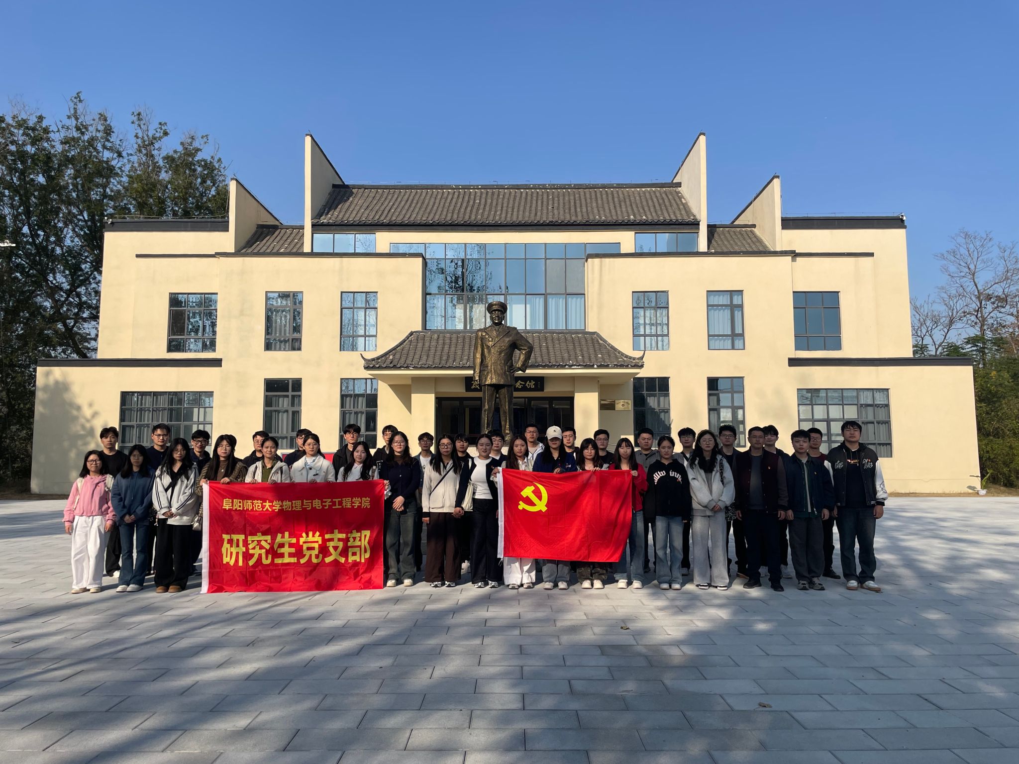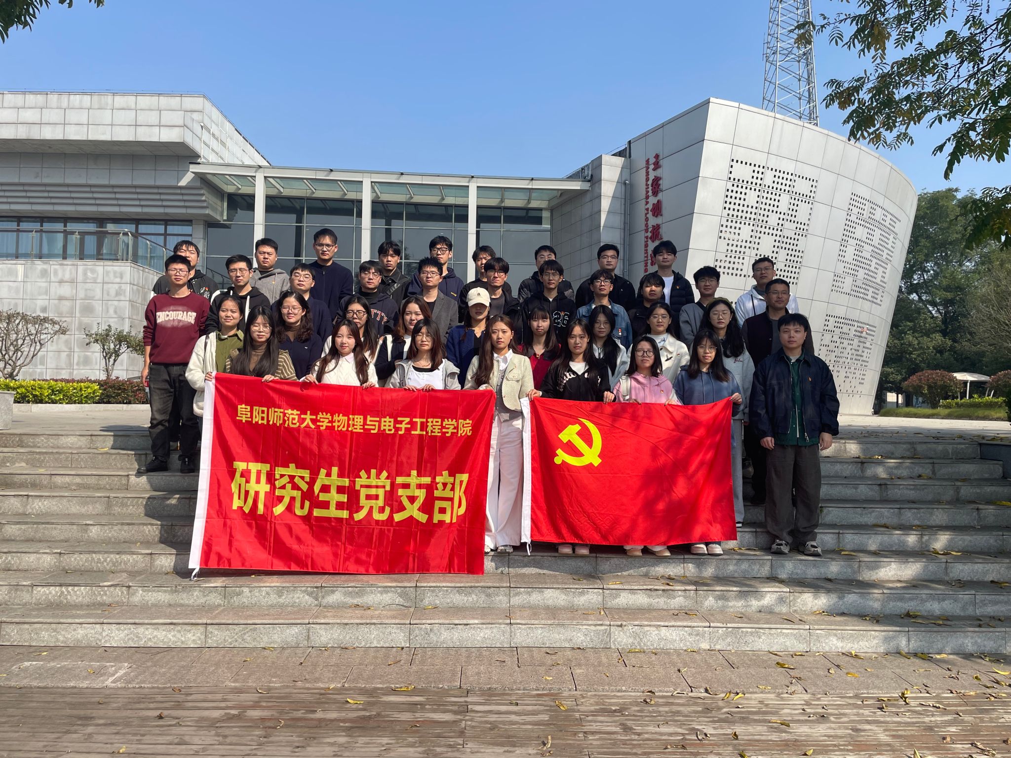 为深入学习贯彻党的二十届四中全会精神,推动红色基因融入研究生培养全过程,11月5日,物理与电子工程学院研究生党支部以 “红色研学悟初心,青春奋进担使命” 为主题,组织全体党员前往阜南县王家坝红色教育基地开展主题党日活动,通过实地走访、沉浸式学习,让研究生党员在历史与现实的交融中感悟初心使命,凝聚成长奋进力量。