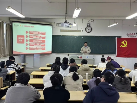 为深入学习党的二十届四中全会精神的核心要义,深化理论学习与专业成长、服务同学的有机结合,11月20日下午,物理系学生党支部在躬行A楼201教室开展了学习贯彻党的二十届四中全会精神专题党课,党课由物理系学生党支部书记李军主讲,全体党员参加。