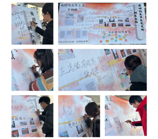 在思想建设板块,结合马克思主义的基本原理及发展历程精心绘制的手抄报,以别具一格的视角解读理论内涵;在社会实践方面,“党的光辉照我心”照片将党与人民紧密相连的感人瞬间定格,彰显着红色精神的传承。此外,从多个维度探讨中国式现代化的内涵、特征与发展路径的感悟文章,也满是同学们深入思索后的真知灼见。而写满了同学们未来规划的便签角,字里行间尽显青春朝气。
