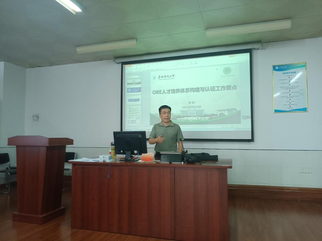 阜阳师范大学教育学院院长李欢作了题为“基于OBE理念的师范类专业建设与人才培养改革”的专题报告。李欢详细介绍了国内专业认证开展情况,分析了师范类专业认证工作的内涵与外延、师范类专业认证三大核心理念,重点从专业认证与OBE人才培养体系、培养目标与毕业要求的制定、产出导向课程体系的构建、认证评建工作要点等四个方面阐释了什么是师范类专业认证、为什么要进行师范类专业认证、如何开展师范类专业认证等问题。