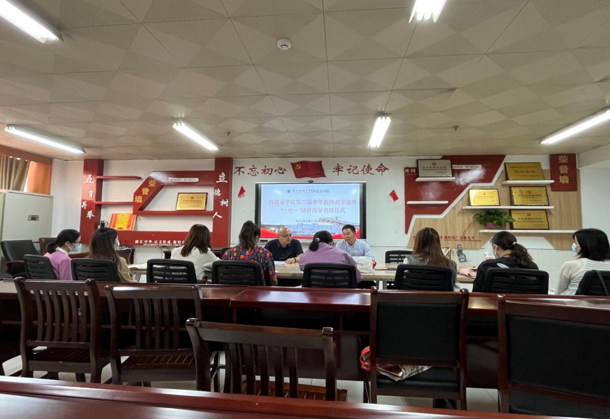 5月31日,外国语学院举行了第二届青年教师教学竞赛校级比赛“一对一”结对指导启动仪式,力争做到精准辅导、个性指导。仪式由外国语学院党委书记刘张飞主持。外国语学院副院长高福猛、在院级选拔赛中脱颖而出的五位参赛教师和结对指导教师参加了启动仪式。