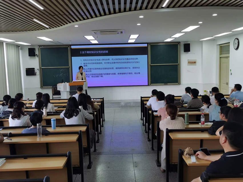 魏锦虹以“从‘我在’到‘我值’——女性知识分子的困顿、觉醒与发展”为题,从汉字的造字结构着眼,通过对杨步伟、林徽因、杨绛等三位中国近现代知名女性人生历程解读,以现代女性知识分子独特的视角生动剖析了当前高校女教师职业发展困顿与觉醒、智慧化发展与道德化引领。魏锦虹用诗一般的语言,娓娓道来、深入浅出,阐释了读书养气、运智藏神对一名高校教师专业发展、师德建设的重要意义,从哲学的角度探讨了新时代女性教师如何做好专业、事业、家庭等规划和平衡,贯彻落实立德树人根本任务,争做“四有好老师”,为党育人、为国育才。
