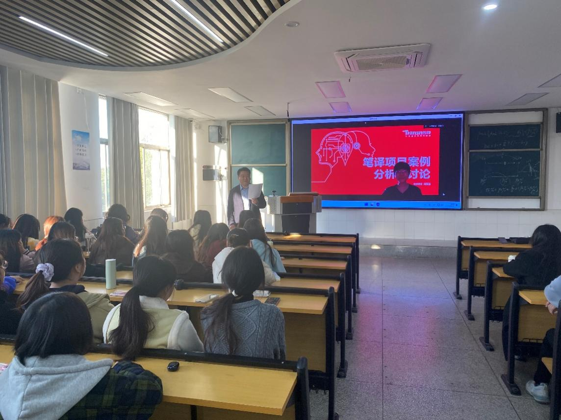 11月21日,作为本学期翻译专业见习活动之一,传神语联网副总裁闫栗丽为翻译专业学生做线上专题讲座。讲座由外国语学院院长赵从义主持。2021级翻译专业全体学生以在线方式参与,2022级翻译专业全体学生集体于景行楼401进行线上讲座观看,全体见习指导老师出席。