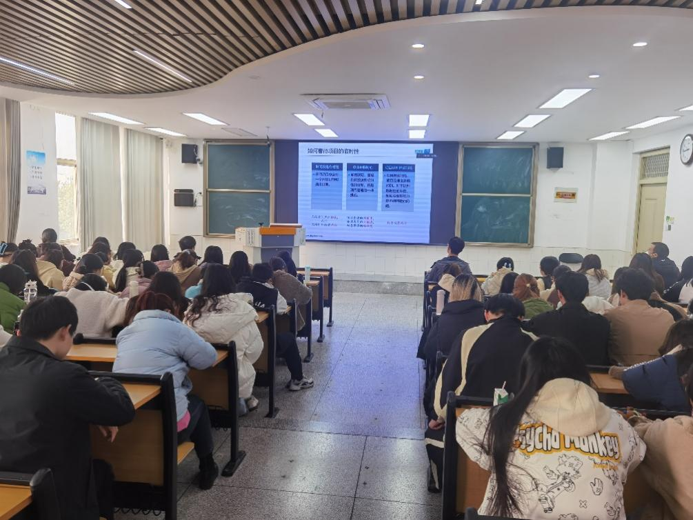 讲座中,师建胜介绍了项目管理的概念、翻译项目管理的知识体系以及翻译项目的工作流程。他将理论知识与翻译实践相联系,将项目管理思维方法与传统管理意识相对照,针对容易混淆的概念和普遍存在的疑惑进行澄清和解答。