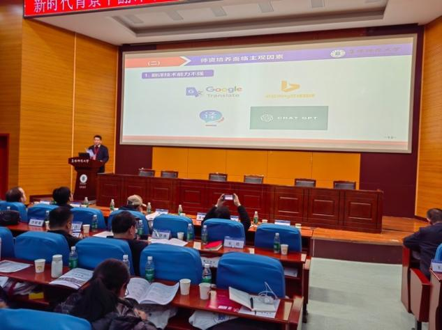 会议期间,大连外国语大学区域国别研究院院长常俊跃、全国翻译专业学位研究生教育指导委员会副主任委员赵军峰、美国翻译技术专家Nick Lambson、巴基斯坦翻译语料库与人工智能研究专家Muhammad Afzaal博士、加拿大翻译技术与本地化专家Kizito Tekwa博士、宿州学院外国语学院院长张雁凌、阜阳师范大学外国语学院院长赵从义分别围绕“明确培养目标,三个维度发力——对外语类专业国际传播能力培养的思考与实践”、“法律文学经典外译与国际传播进路”、“Equipping Translators with Tech for China’s Globalization”、 “Deciphering the Future: Navigating the Convergence of AI and Human Expertise in Translation Studies”、“From Text to Context: Building a Robust Translation Discipline for Today’s Challenges”、“赛珍珠翻译思想之身份归因观照”、“新时代背景下翻译师资培养:机遇、挑战与提升” 等主题作主旨发言。