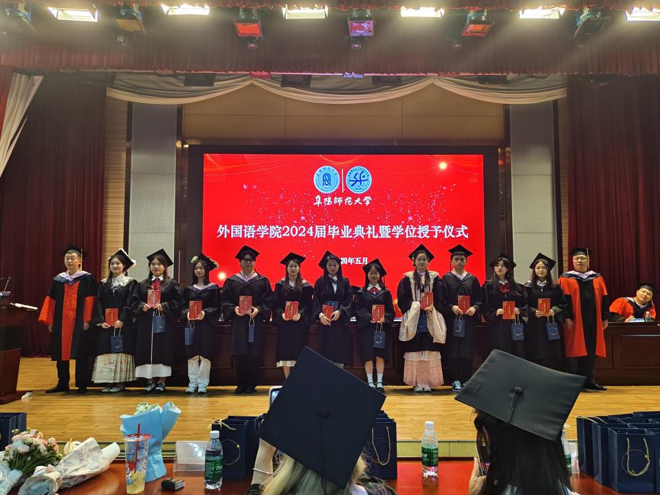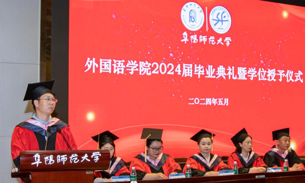 5月19日,外国语学院2024届本科毕业生毕业典礼在正行楼二楼报告厅隆重举行。学院党政领导、系部主任、毕业班辅导员、专任教师代表、学生家长代表及2024届毕业生参加典礼。典礼由院长赵从义主持。