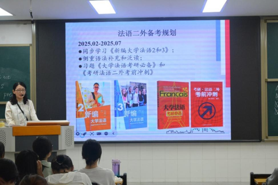 为切实助力学生考研,外国语学院在前期调研基础上,契合学生实际需求,精心组织法语专业教师齐蕊、肖双双分别于9月10日、9月24日针对外语专业考研学生二外法语开展系列专题辅导。全院备战考研的学生踊跃参加。