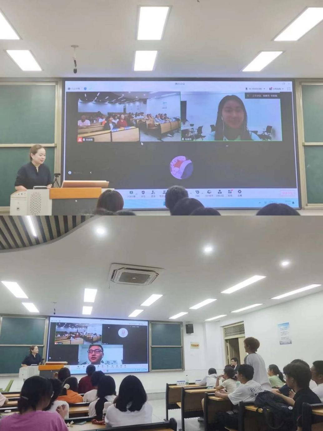 此次见面会还邀请了2022届毕业生李强(就职安徽省六安市毛坦厂中学)、2023届毕业生杨雁琳(吉林师范大学硕士研究生在读)和2024届毕业生李振宇(日本城西国际大学硕士研究生在读)通过腾讯会议,结合自己的学习经历和实践经验,从就业、考研、留学等方面和新生们分享了各自的心得体会。