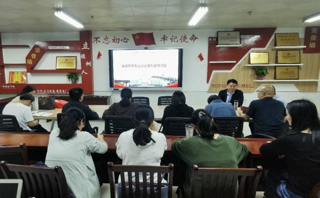 为进一步推进我院师范专业认证工作,外国语学院于4月19日晚召开英语专业(师范)认证第七轮研讨会,外国语学院党委书记刘张飞、院长赵从义、副院长高福猛及各专项小组负责人参会。会议由英语系主任张艳主持。