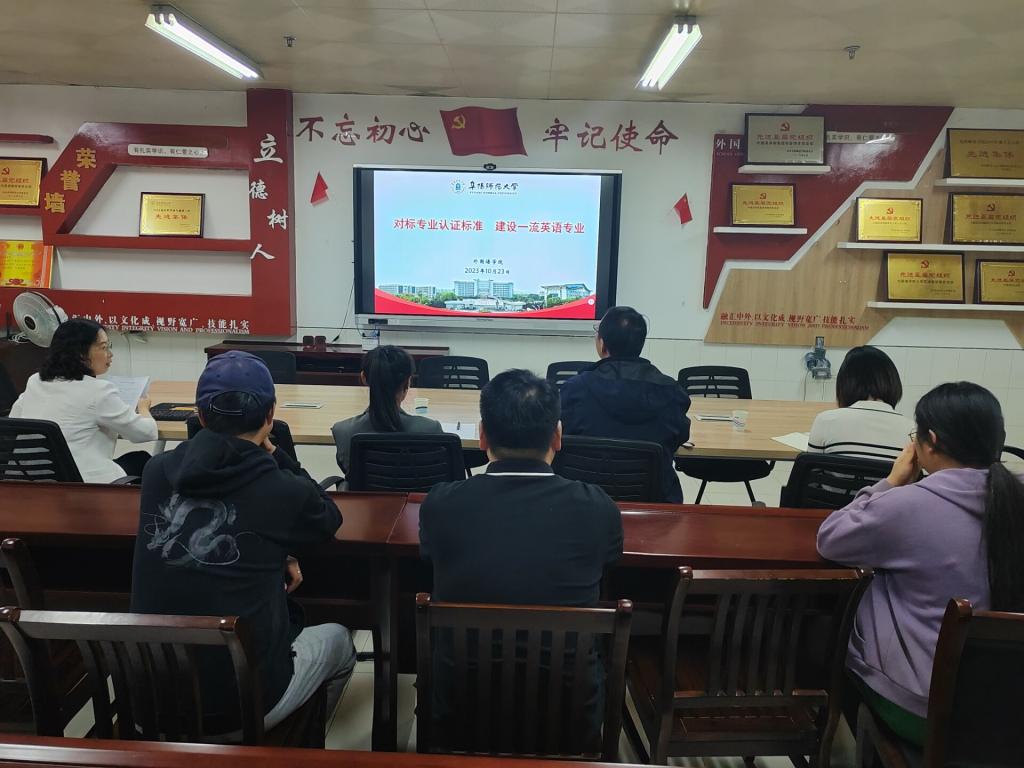 10月23日下午,学校教学质量管理处处长房正宏、评估认证科科长辛敏,文学院中文系主任张薇薇一行来到外国语学院检查英语专业(师范)认证工作的准备情况。外国语学院院长赵从义、英语专业负责人张艳等相关人员参会。