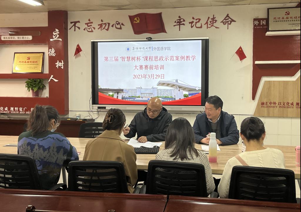 在第三届“智慧树杯”课程思政示范案例教学大赛开赛之际,为进一步提升外国语学院教师的参赛水平,外国语学院于3月29日召开第三届“智慧树杯”课程思政示范案例教学大赛赛前培训交流会。会议由外国语学院院长赵从义主持。各系部推荐选拔的13名参赛教师参加了培训交流。
