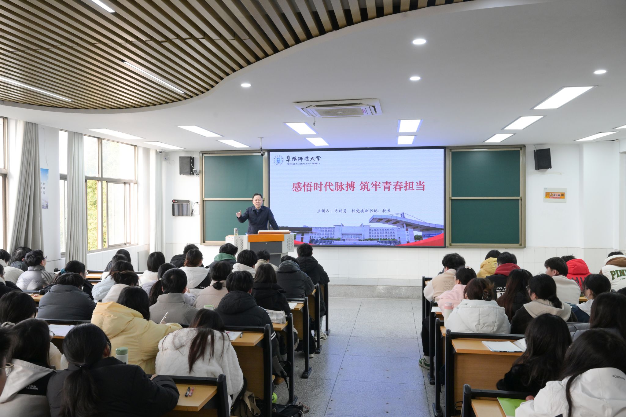 为全面贯彻落实习近平总书记对新时代学校思政课建设的重要指示精神,落实立德树人的根本任务,3月6日,校党委副书记、校长方廷勇以“感悟时代脉搏 筑牢青春担当”为主题,为外国语学院2023级翻译、日语专业的学生讲授了一场富有思想性、理论性和亲和力的思政课。