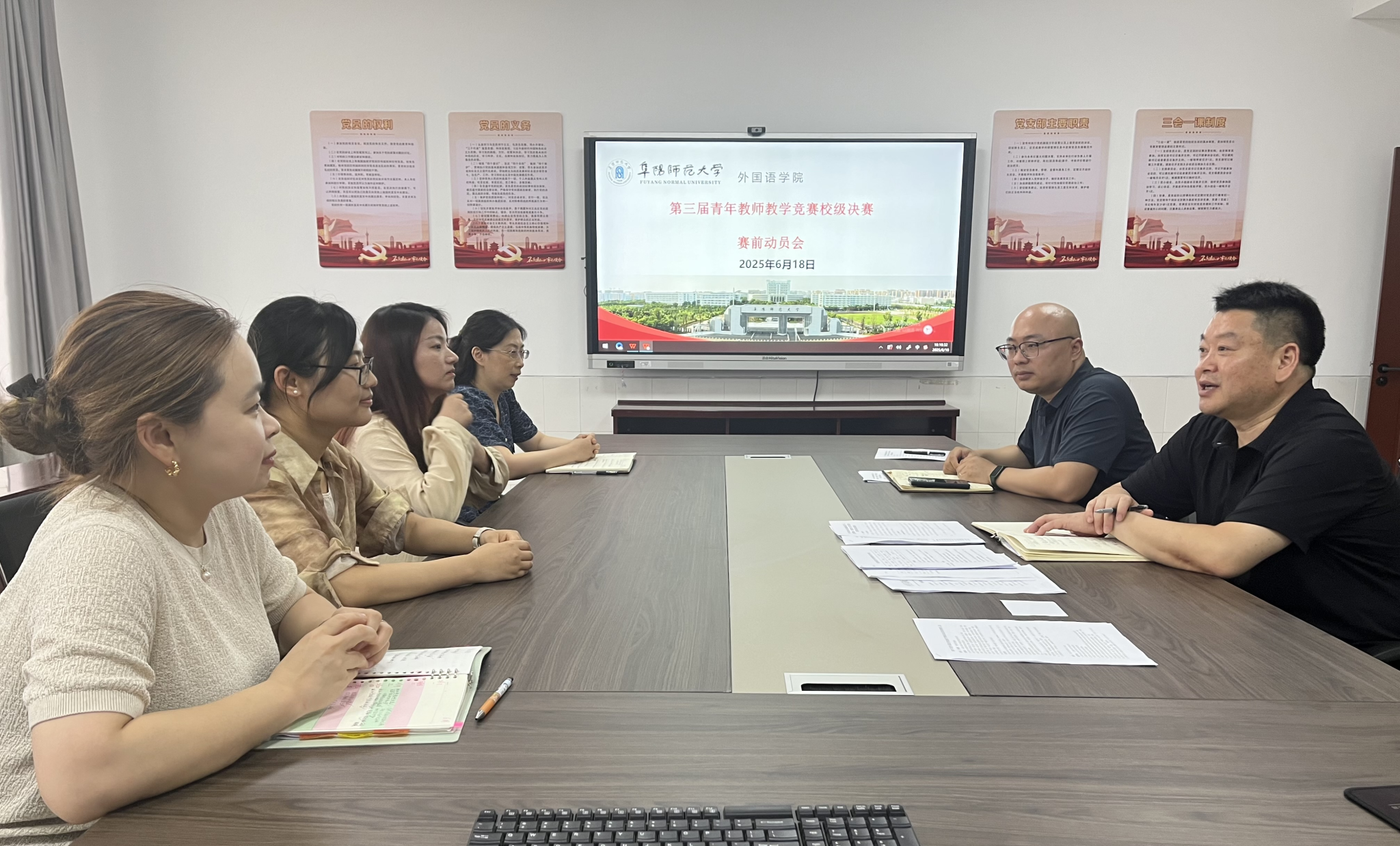 6月18日下午,外国语学院举办第三届青年教师教学竞赛校级决赛赛前指导培训会。代表学院参赛的青年教师李群群、王秀霞和所在系部主任张艳、张超南参加指导培训会。会议由外国语学院副院长高福猛主持。