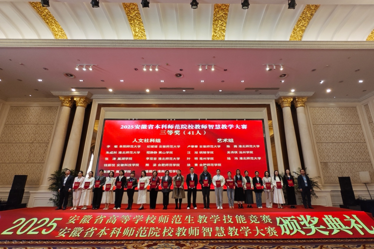 2025年安徽省本科师范院校教师智慧教学大赛于2025年10月31日至11月2日在合肥举行。外国语学院教师梁雨晴前期荣获校赛二等奖,随后代表学校出战,勇夺省赛人文社科组三等奖。