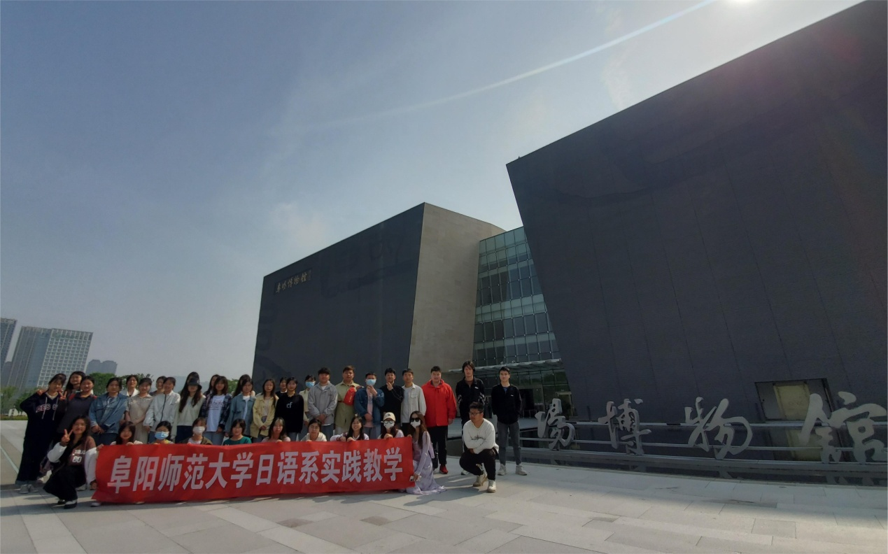 4月14日,作为本学期专业见习活动的一环,日语系2021级学生在金玲玲、王雨奇老师的带领下前往阜阳市博物馆进行实践教学活动。