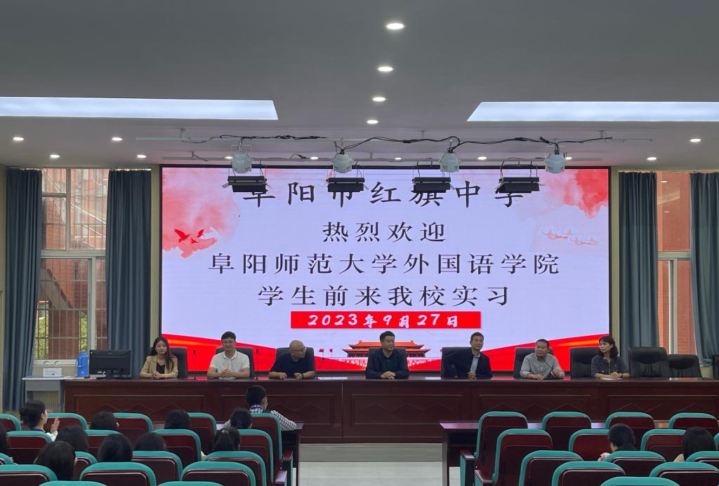 为进一步加强与教育实习实践基地的合作共建,提高英语(师范)专业学生教育教学实践能力,9月27日下午,外国语学院院长赵从义、副院长高福猛与实习指导教师李群群、高理想带领我院2024届英语专业19名实习生前往阜阳市红旗中学实习基地进行实习对接交流。阜阳市红旗中学副校长陈荒龙、校长助理赵新玉、英语组组长刘静及高一年级全体英语教师参与此次实习见面交流会。