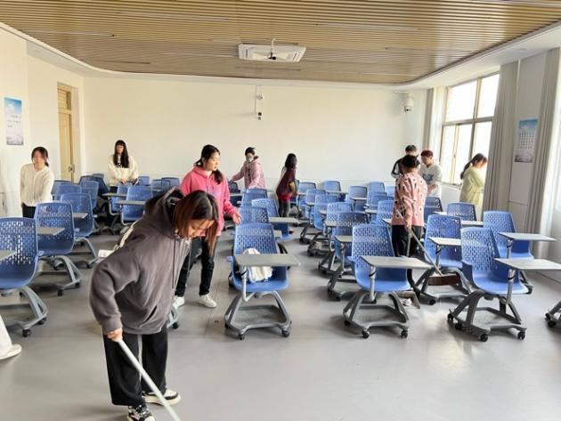 2023年11月23日-24日,外国语学院组织翻译专业2022级、2021级学生在见习周期间开展劳动教育实践活动。学生们在翻译系教师的指导下,分工合作,打扫景行楼四楼教室、走廊,将劳动融入见习活动中。学生动手实践、出力流汗,接受锻炼、磨炼意志。
