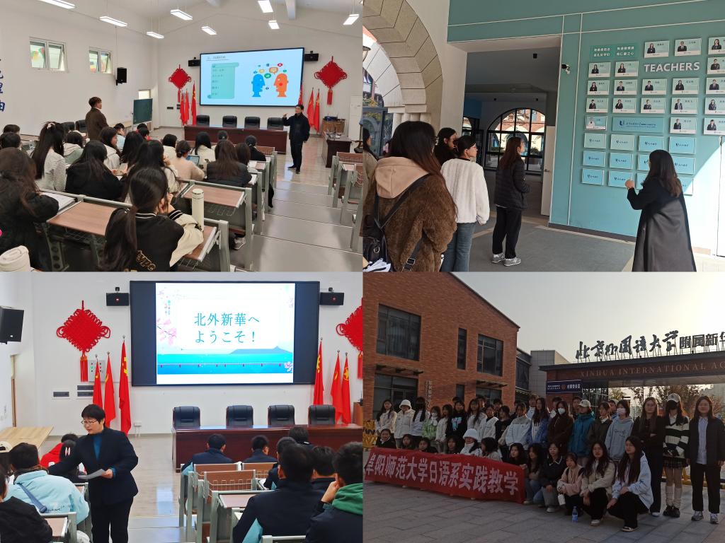 2023年11月23日,外国语学院日语系2021级全体同学在李红艳、宋会芳两位老师的带领下,来到北京外国语大学附属新华外国语学校进行见习活动。本次见习分为观摩课和专题讲座两部分。学生们现场分别观摩了高中部日语教师杨慧芳以及国际部外籍教师福原瞳中日合作办学班高一和高三的授课。
