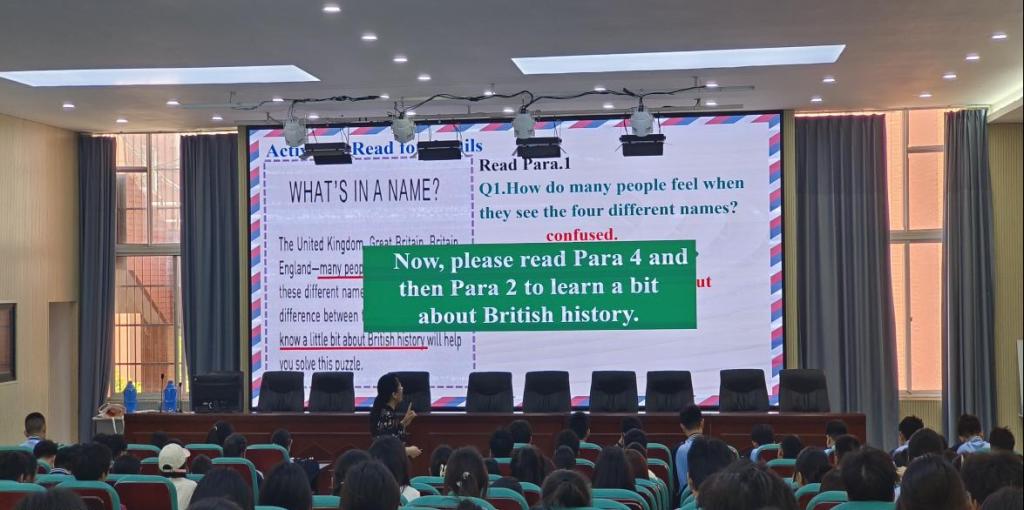 李瑞授课内容选自高中英语必修二的第4单元。在导入部分,李瑞先以问题测试学生对英国不同名称的了解,然后以短视频展示英国名称的历史来源,既激活了学生的背景知识,也激起了学生的学习兴趣,同时引出本节课的阅读话题。在讲解过程中,李瑞设计了思维导图、小组讨论、你问我答等多种形式的课堂活动,开展探究式学习,既提升了学生的课堂参与度,也培养了学生的阅读能力和思维品质。