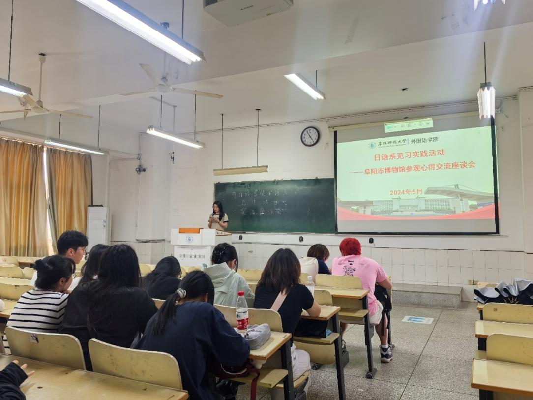 参观结束后,日语系2022级全体同学在景行楼405教室进行了见习研讨。围绕实践教学活动中的收获、印象最深刻的文物、博物馆讲解词的翻译策略、对专业见习活动的意见和建议等方面,通过小组讨论、意见发表的方式,同学们各抒己见,畅所欲言,不断碰撞出新的火花。大家纷纷表示通过在博物馆的参观学习,不仅对阜阳的历史和文化有了更深入的了解,也感受到了中华文化的魅力和力量,进一步学习和了解了中国文化。