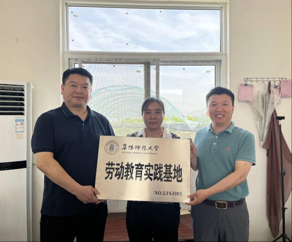 6月13日上午,教务处副处长、教师教学发展中心主任郑继兵,外国语学院院长赵从义,副院长高福猛及学院2022级、2023级英语、翻译与日语专业20名学生代表,前往阜阳市名扬农业科技有限公司参加劳动教育实践活动并举行劳动教育实践基地挂牌仪式。