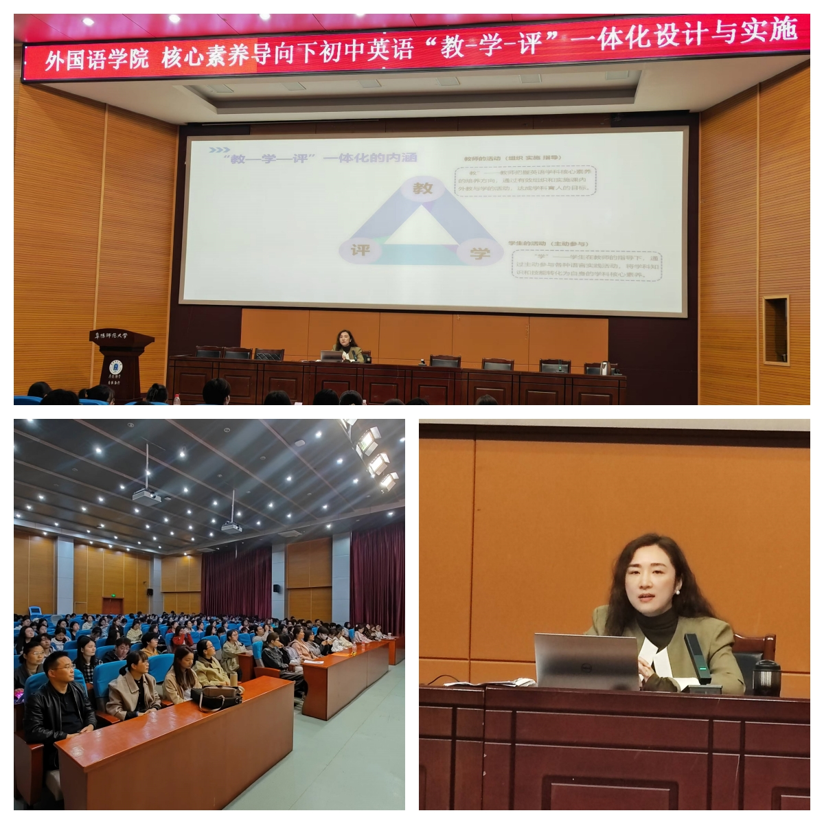 11月14日,英语系邀请合肥市蜀山区骨干教师、优质课评比一等奖获得者合肥市五十中学卞晓程老师在F楼报告厅做题为“核心素养导向下初中英语教-学-评一体化设计与实施”的教学设计讲座。英语系2023级全体见习学生及指导教师到场聆听学习。