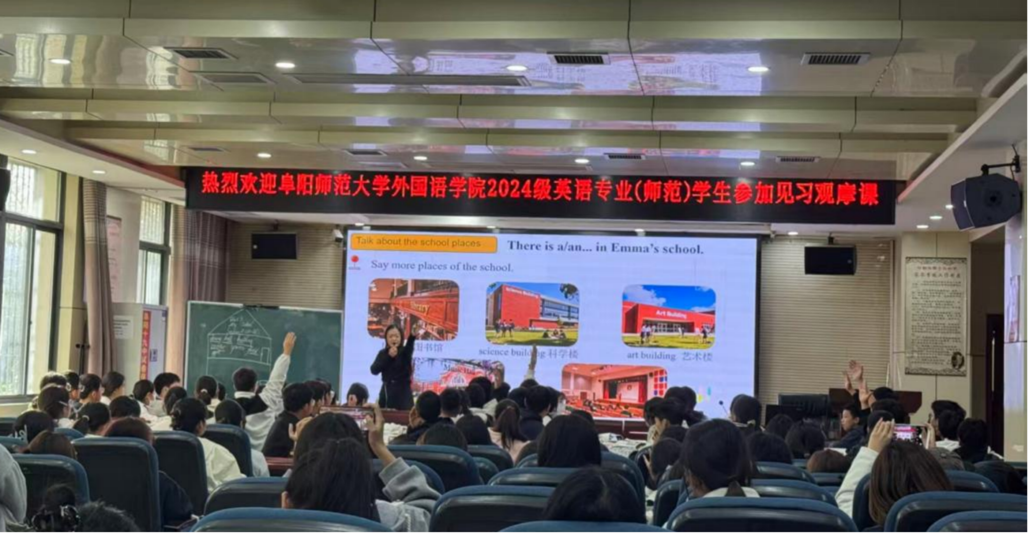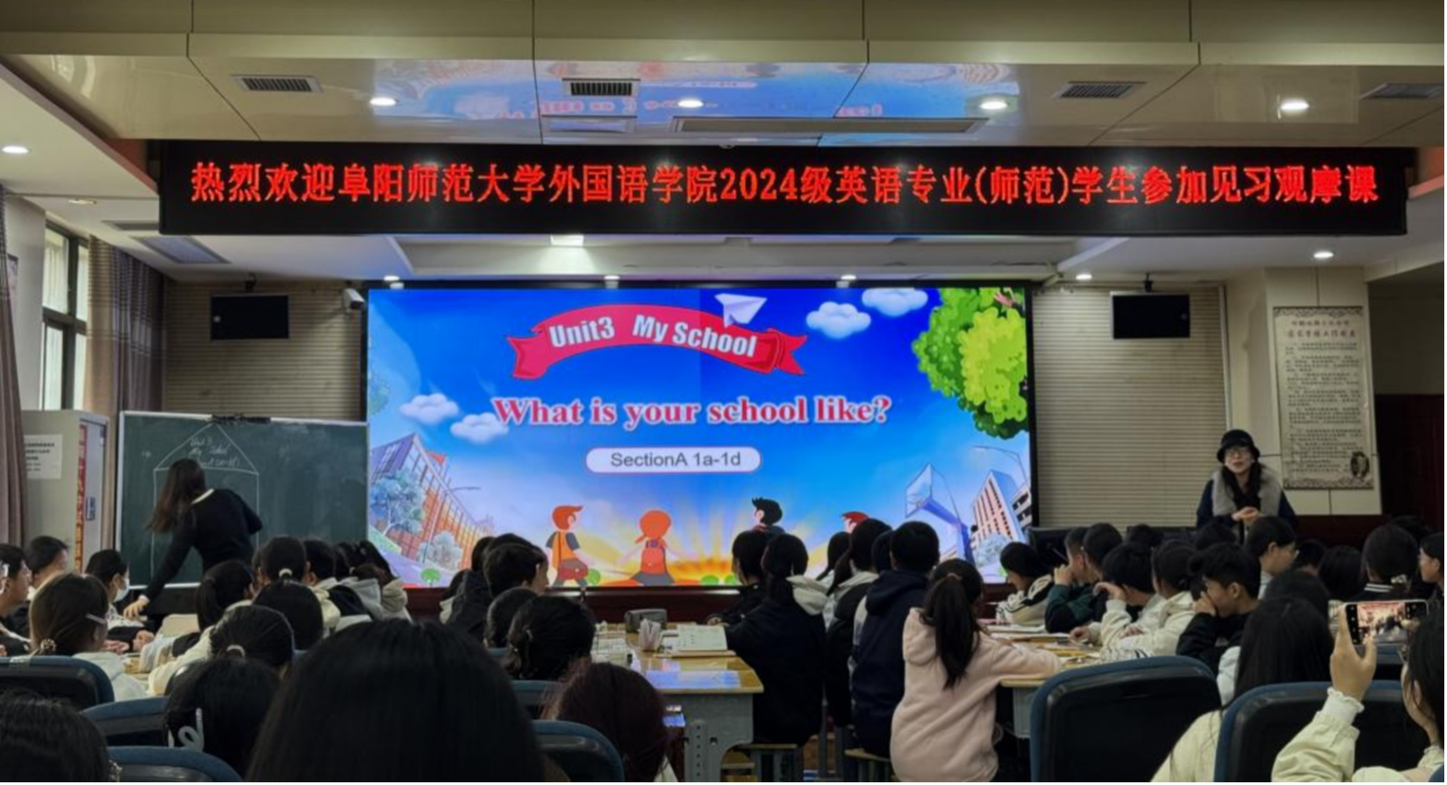2025年11月11日下午,外国语学院英语系2024级全体学生赴阜阳市第十九中学开展教育见习活动,现场观摩了由该校骨干教师王春艳执教的英语听说示范课。
