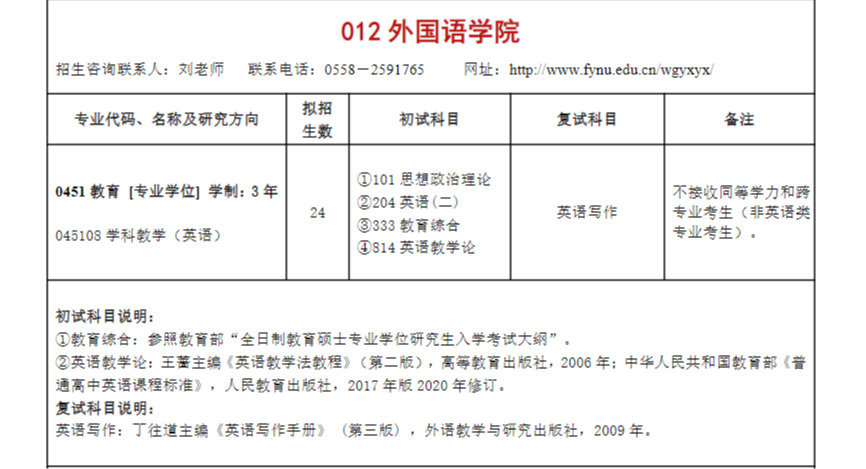 (二)考生可通过我校研究生处网站(http://www.fynu.edu.cn/yjsc/index.htm)查阅我校招生简章、招生专业目录等相关招生信息。