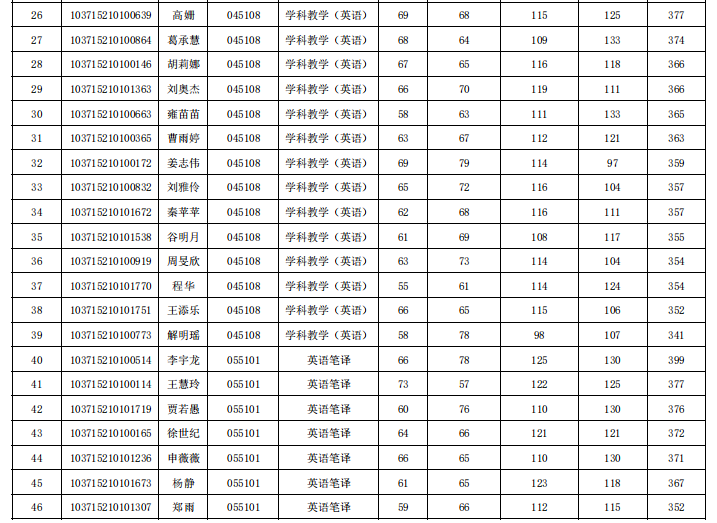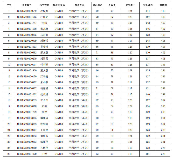 外国语学院2025年硕士研究生招生一志愿复试考生名单