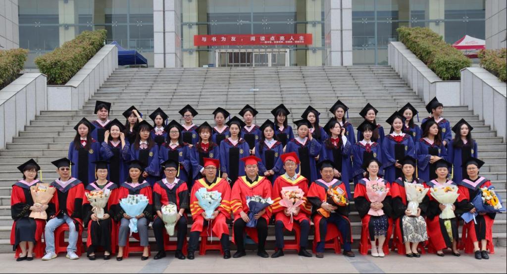 最后,学院党政领导及全体研究生导师为毕业研究生拨穗,赠送毕业纪念品,并与全体研究生在学校逸夫图书馆前合影留念,为美好的研究生学习生活画上圆满的句号。