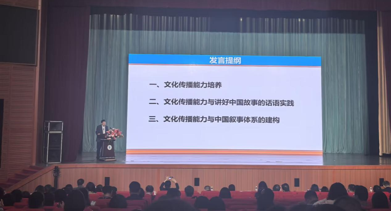 苗兴伟从文化传播能力培养、文化传播能力与讲好中国故事的话语实践、文化传播能力与中国叙事体系的建构三个方面展开发言,指出讲好中国故事的话语实践是推动中国文化走向世界、促进中国与世界沟通的有效途径。最后,他鼓励外语专业师生立足外国语言文学学科的优势,加强文化传播能力培养,提升在文明互鉴中用外语讲好中国故事的能力,推动中华优秀传统文化的对外传播,展现可信、可爱、可敬的中国形象。