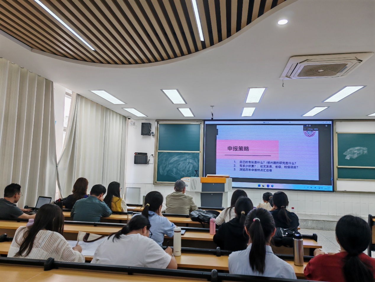 报告会上,刘宏刚以“国社科项目申报中的选题:以外语教师教育为例”为主题展开分享。国社科项目申报是高校教师科研的重要环节,而选题则是其中的关键。刘宏刚聚焦外语教育主题,深入分析了过去6年国社科外语教师教育类选题的特点,并进行了系统总结与梳理。同时,结合自身丰富的国社科申请经历,从选题来源、选题策略(包括自身研究的专业背景、研究兴趣、研究方法以及选题的影响力)等多个层面分享了宝贵经验。本次专题报告为学院教师搭建了与知名学者交流学习的平台,有助于提升教师对国社科项目申报选题的认知水平,为后续的科研项目申报工作注入新的活力。